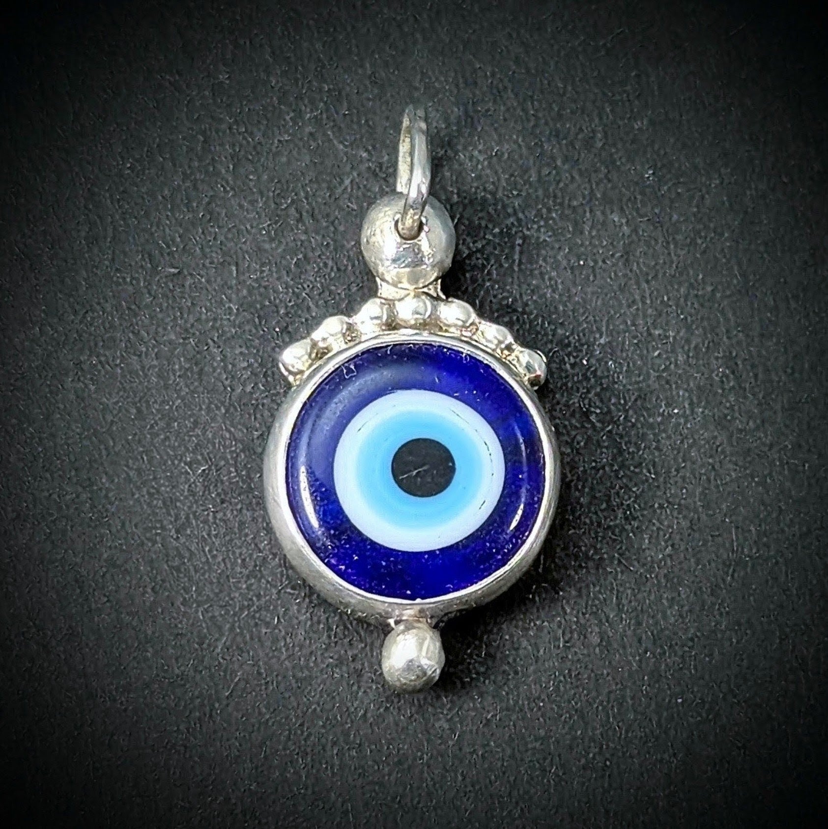 A delicate symbol of protection you can wear every day. Crafted in solid sterling silver, this pendant features a bezel-set lampwork glass evil eye at its center. The handmade glass eye brings a subtle shimmer of color, while the sleek silver setting keeps the design refined and timeless.